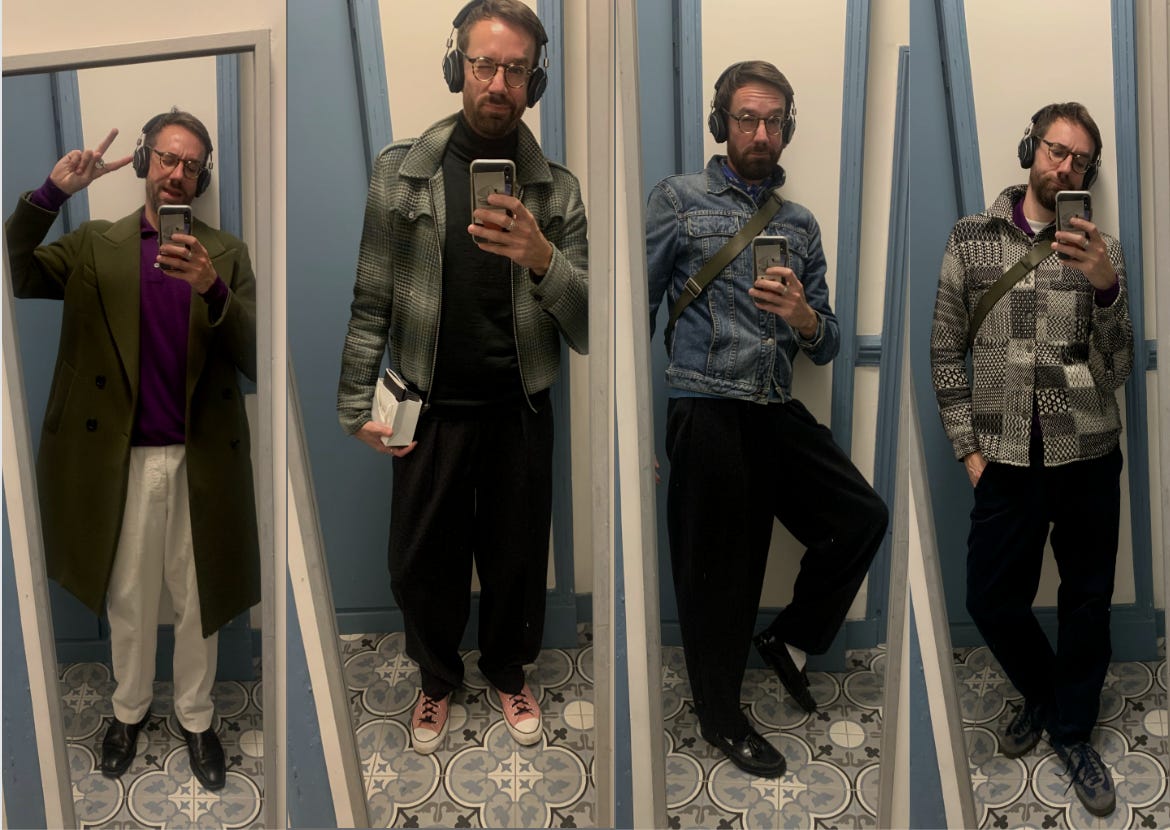 When it comes to outfits, I dress very instinctively, with a kind of what am I feeling today and is it appropriate for what I have planned? Recently, I’ve been really enjoying the act of dressing up. Putting on some proper shoes for an evening panel discussion. Carefully choosing things that actually go together according to ‘the rules’, in this case a Hardy Amies maxim: “a man should look as if he has bought his clothes with intelligence, put them on with care, and then forgotten all about them.”